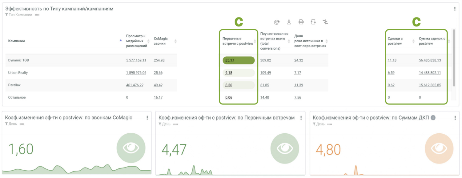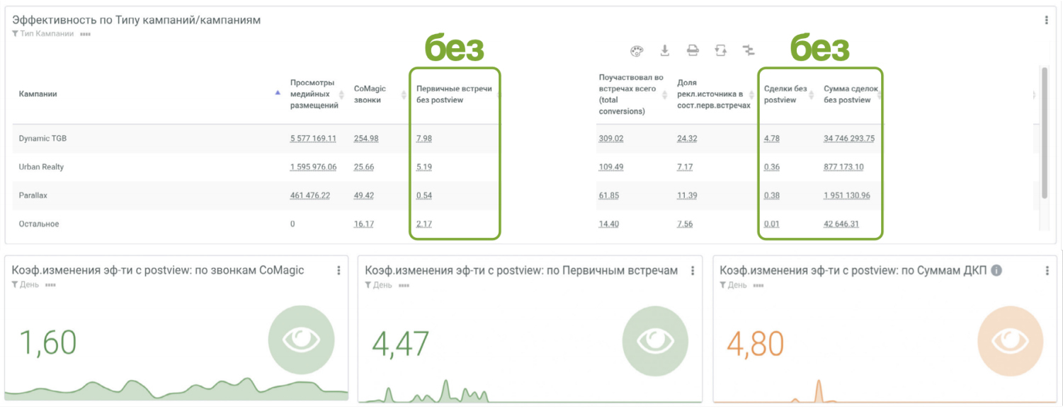 в 7 раз ниже Стоимость целевого звонка (CPA) в 5,9 раз ниже Стоимость сделки (CPS) x 1,6 касаний до сделки х 1,8 цикл сделки с учетом post-view